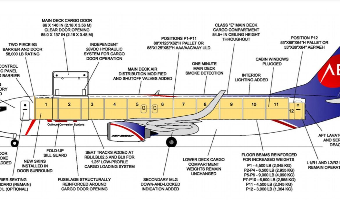 Los cambios técnicos planeados incluyen la instalación de una puerta de carga lateral izquierda, la modificación del compartimento principal a una categoría Clase E para carga, el refuerzo del suelo y la integración de un sistema de carga de paletas tipo ANCRA.