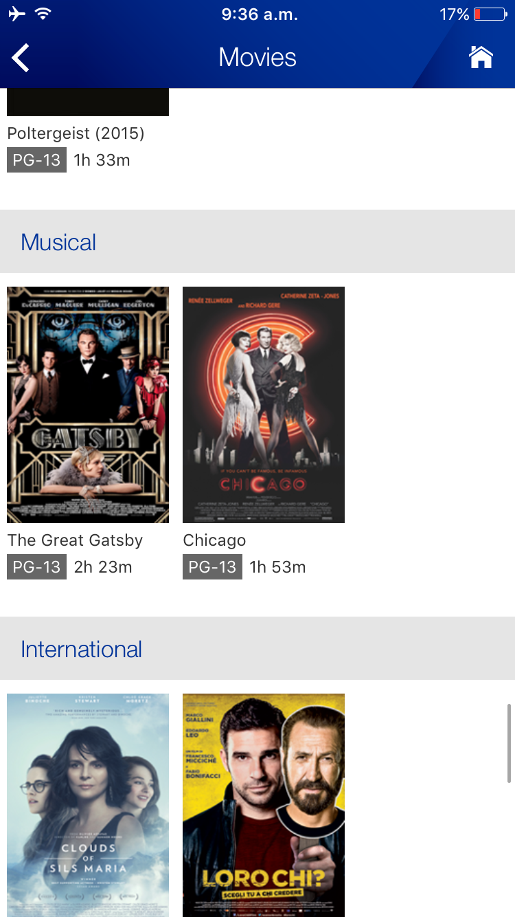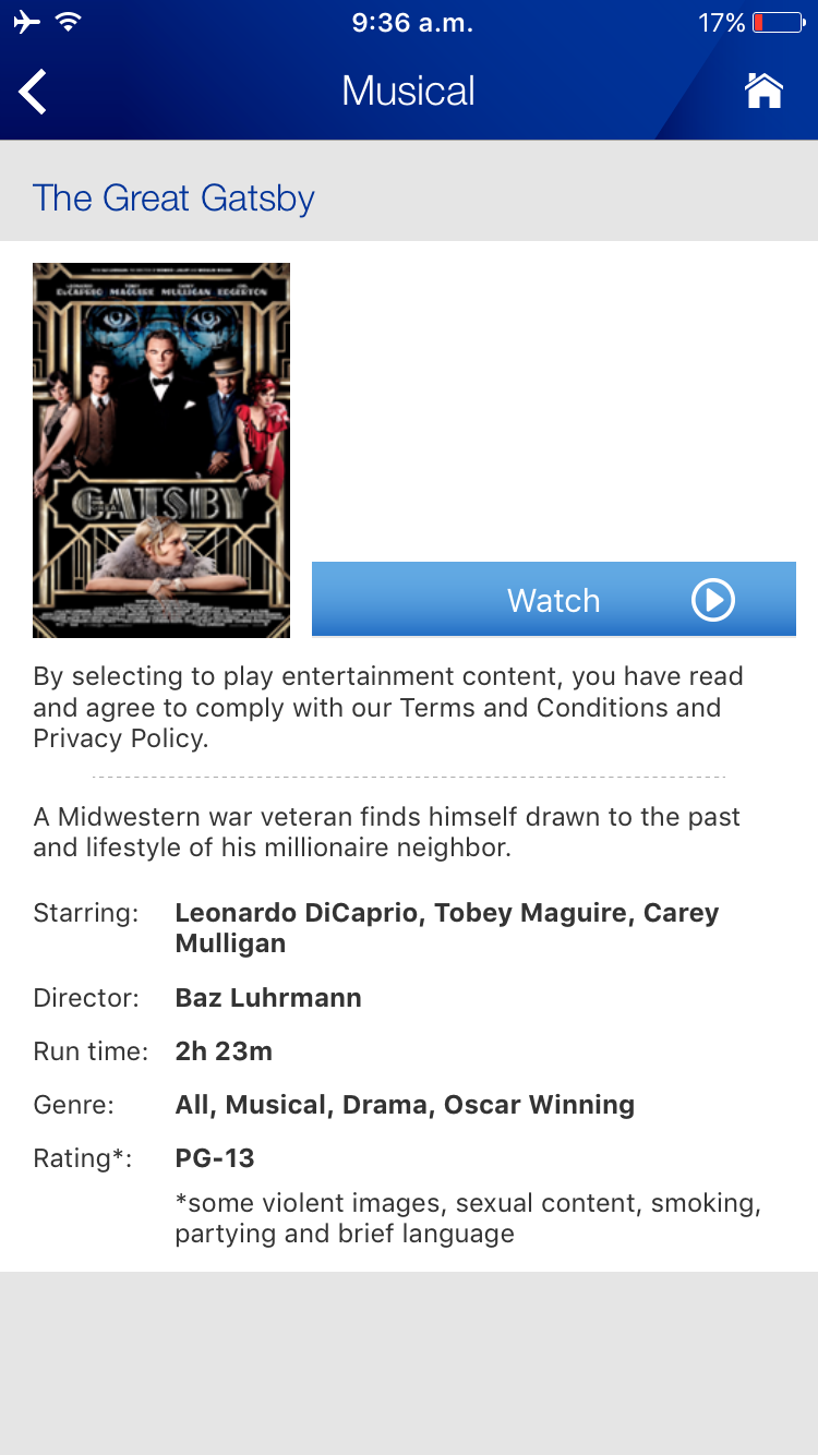 La app de United es muy fácil de usar. Así que no tienen que preocuparse de esto cuando vuelen con ellos. Comencé a ver “El gran Gastby” en mi iPhone y aquí fue cuando me dije “debí haberme traído mi Tablet”. Así que aquí mi recomendación a todos ustedes: cuando vuelen con United, lleven su tableta o computadora. Un detalle curioso es que a pesar que la aerolínea dice que de la fila 1 a la 21 cuentan con puertos de carga (enchufes) la realidad es que nunca lo encontré, por más que lo busqué por todos lados.